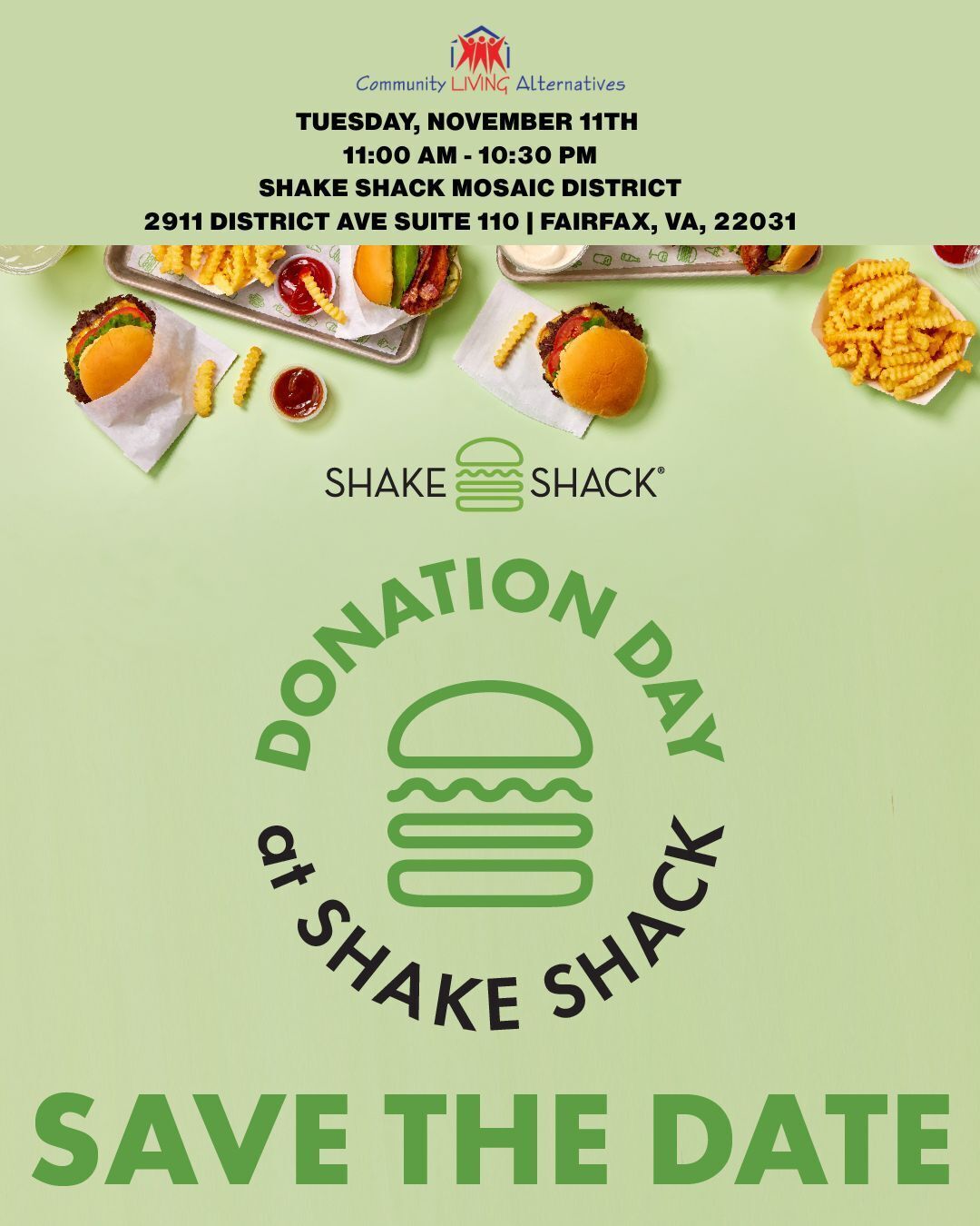 SAVE THE DATE: Donation Day for CLA at Shake Shack Mosaic District!